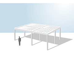 - Conception sur mesure et mulitples configutations de structures (avec ou sans poteau, fixe ou autoporté, modules d'angles, poteaux déportés). Possibilité de coupler la pergola en largeur et en longueur